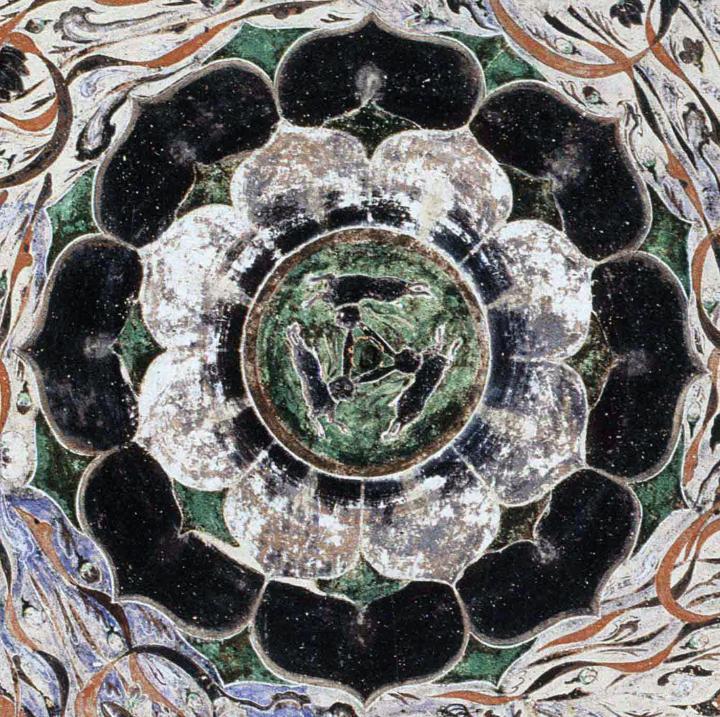三只兔子競相追逐,兩兩共用一耳,形成了“三兔共耳”的獨(dú)特造型……在敦煌莫高窟,有20個(gè)洞窟出現(xiàn)了這個(gè)趣味圖案。